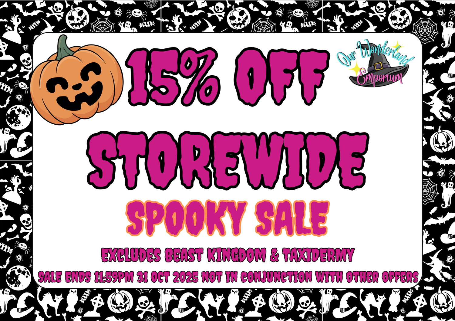 Until the stroke of Midnight on the 31st of October we're having 15% off ALMOST EVERYTHING! Discount applies automatically at checkout